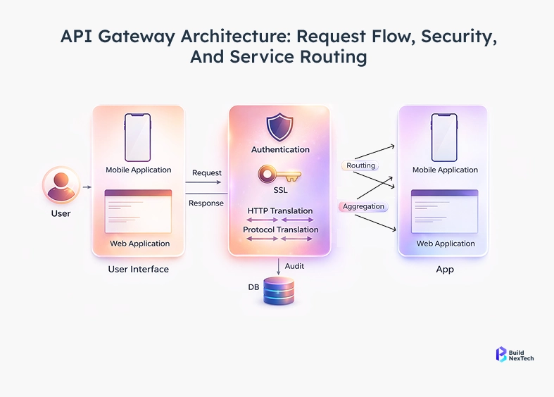 When a request hits https://api.myapp.com/v2/orders, the gateway reads that path, applies the relevant security checkpoint rules for v2, checks rate limits against the caller's API key, and forwards it to the right backend service. The whole thing happens in single-digit milliseconds. The client never sees any internal complexity.