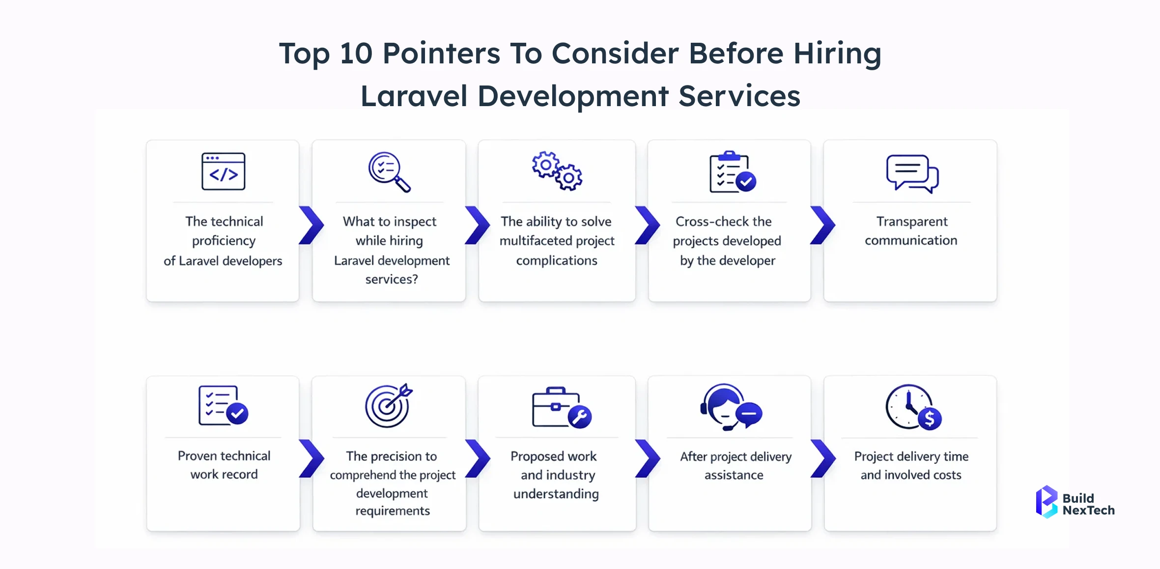 Buildnextech, through its AI-powered platform Bnxt.ai, simplifies the process of selecting the best Laravel development services company for your needs. By analyzing technical requirements, industry benchmarks, and project goals, Bnxt.ai matches businesses with expert Laravel partnership providers.