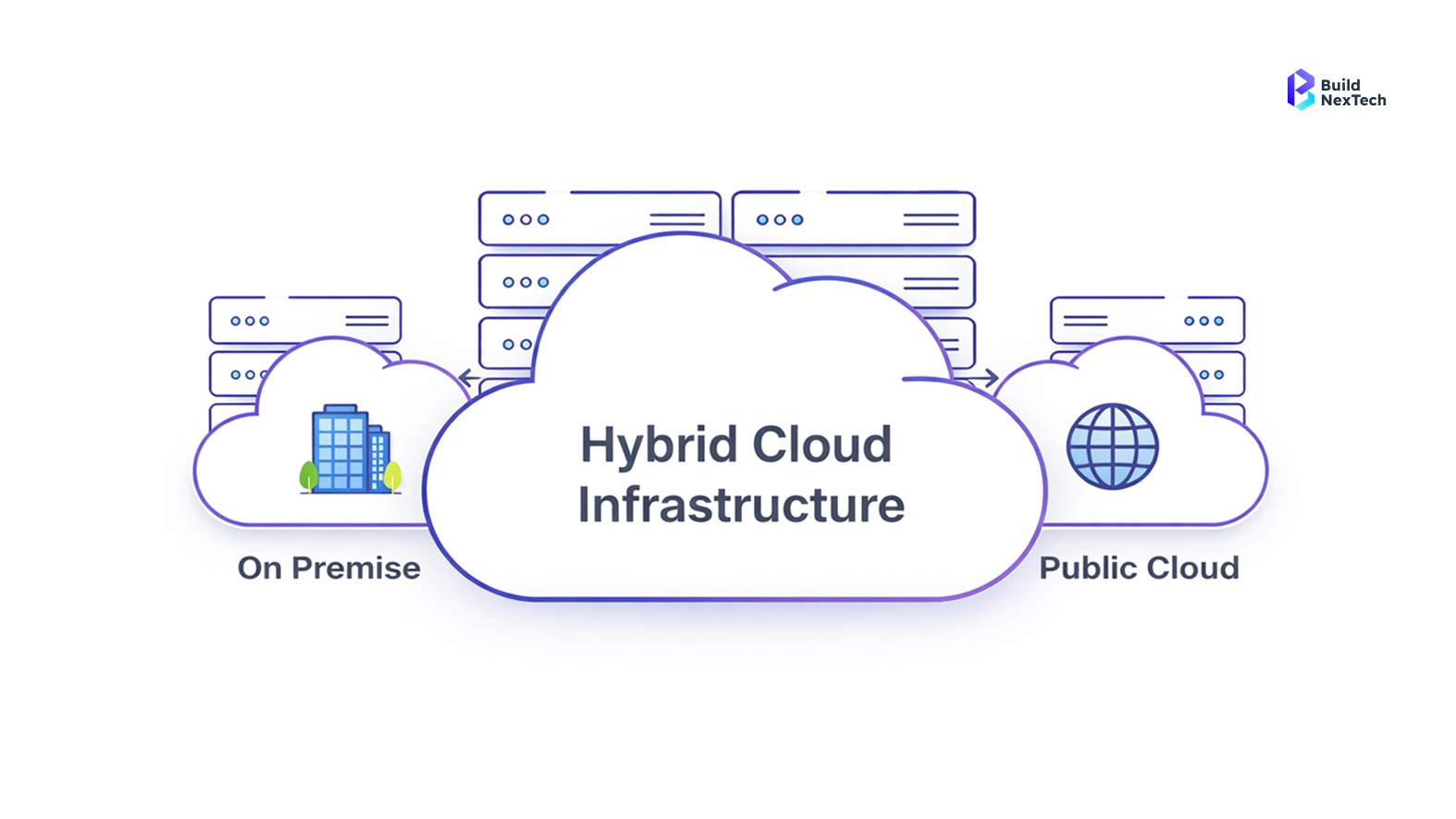 A hybrid cloud infrastructure is created with a combination of both public cloud infrastructure, private cloud environments, as well as on-premises infrastructure data centers as a single operational model for organisations to distribute their workloads in order to achieve the right balance of high performance, compliance, as well as cost-effectiveness, which are critical to any new cloud computing solution being developed today.