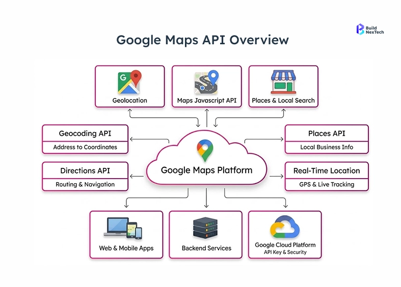 The Google Maps Platform offers a powerful infrastructure of API and SDKs to enable programmers to envelop maps, location cleverness, and navigation elements into programs. These APIs can be run on the scalable infrastructure of Google Cloud Platform, and hence they are reliable to support an enterprise grade system.