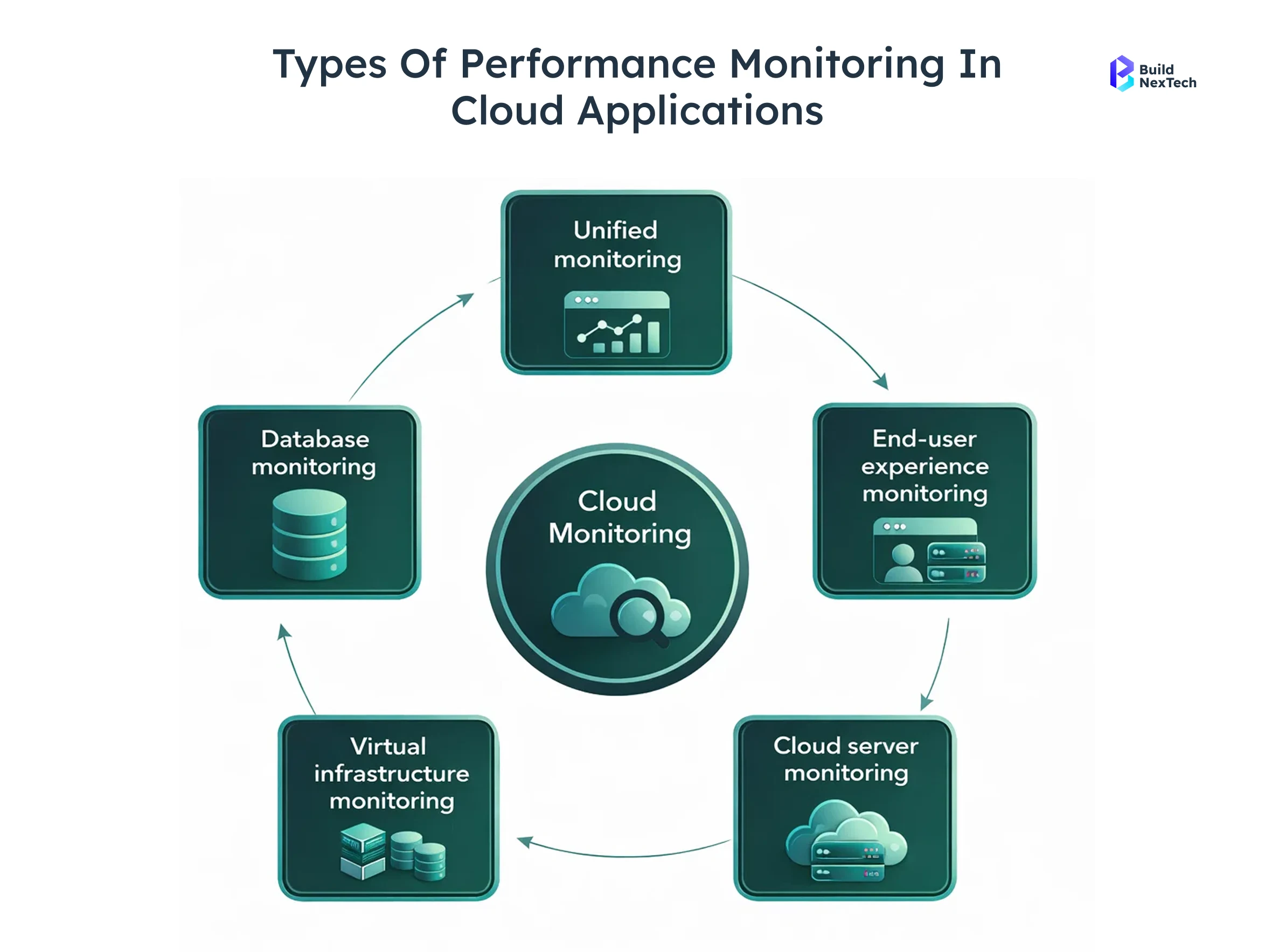 Cloud-based applications require specialised monitoring techniques because they run on a dynamic infrastructure that scales automatically. Several types of performance monitoring help organisations understand system behaviour across various layers of the technology stack.