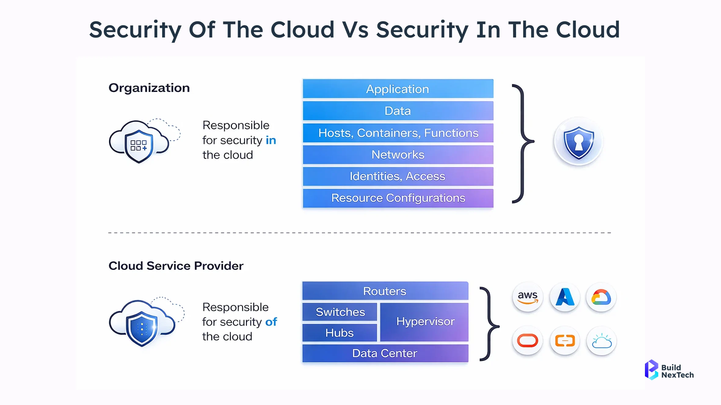 At BuildNexTech, we assist organizations in implementing secure methodologies for cloud migration through the inclusion of governance, compliance, IAM, and continuous monitoring across all stages of the cloud transformation journey. By strengthening the cloud security shared responsibility model and embedding security into the cloud service architectural model, we ensure long-term resilience and operational excellence.