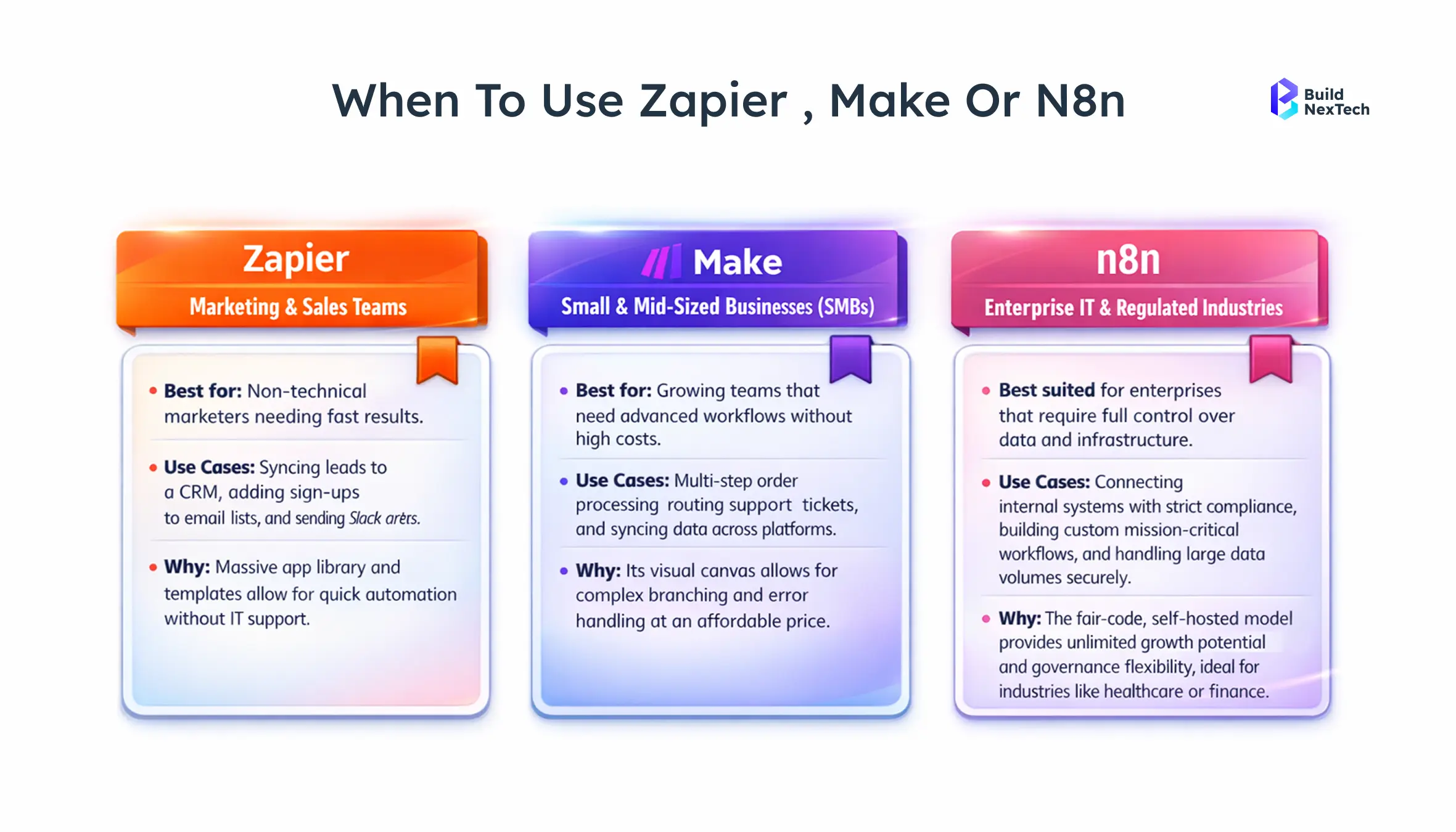 - When to use Zapier, Make, or n8n based on actual scenarios