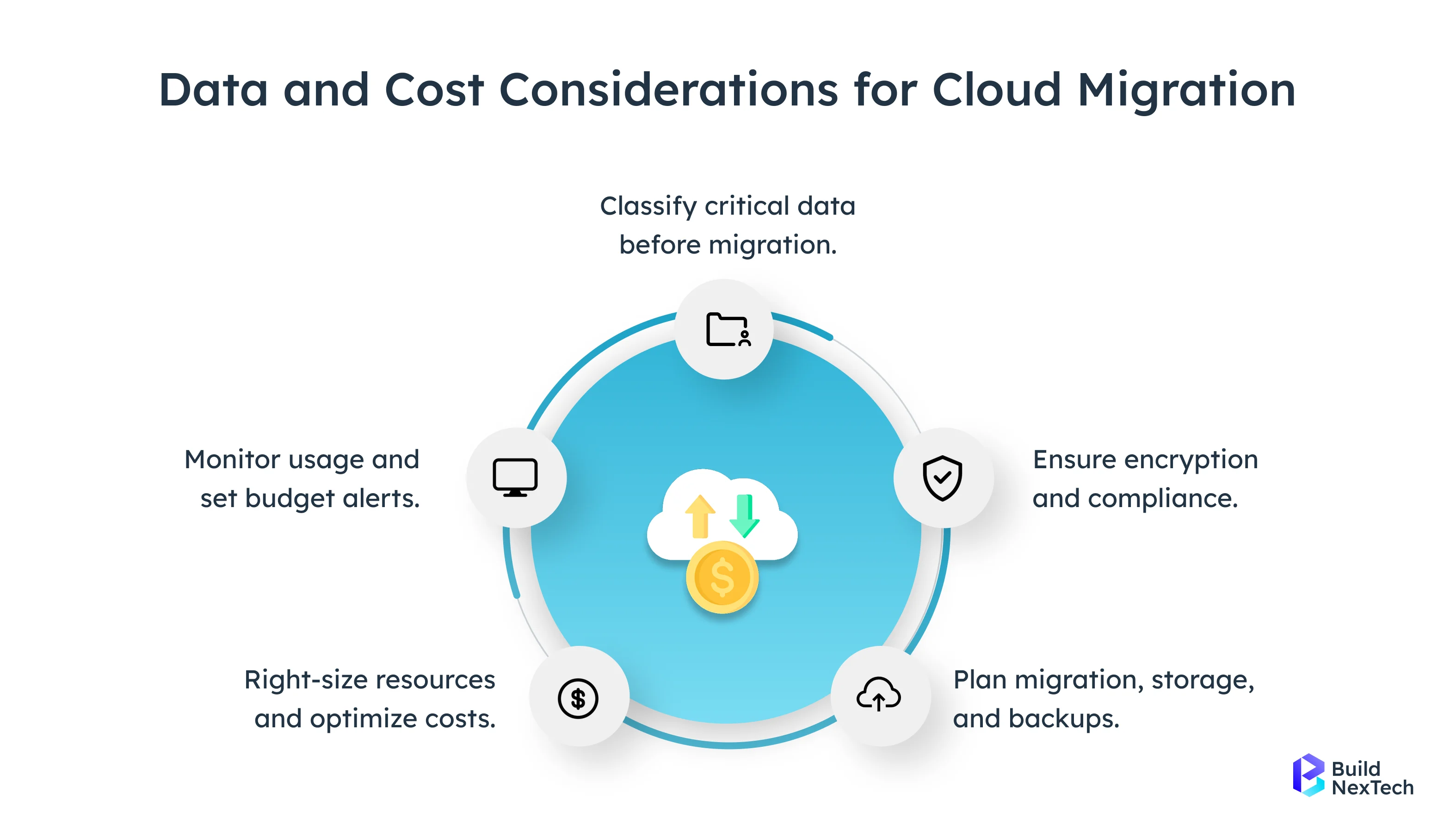 Consider storage type, data transfer, and redundancy 💾 to optimise costs and performance. Plan for migration complexity, volume, and resource usage to ensure efficiency ⚡.