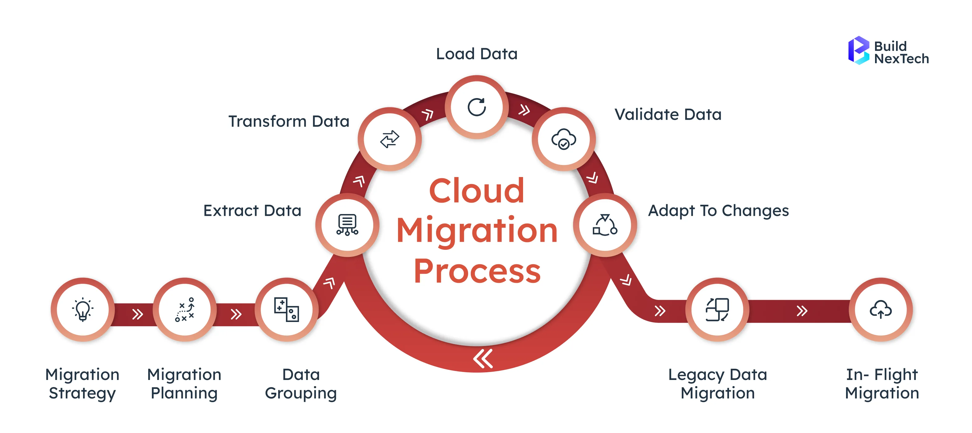 Cloud migration is not a single step but a multi-stage process, usually involving: