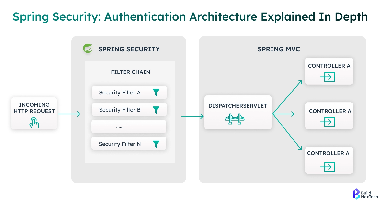 Spring Security works at the HTTP protocol level, intercepting HTTP requests before they reach controllers like ProductController or OrderController. This ensures that only authenticated and authorized users can access sensitive Back-End resources.
